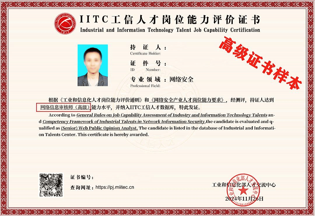官方认证:考核通过者将获得工信部人才交流中心颁发的《IITC工信人才岗位能力评价证书》,官网可查,是个人专业能力与企事业单位选拔人才的重要凭证。